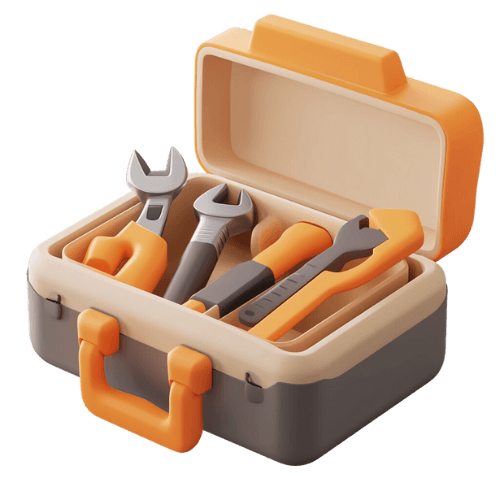 3D-Icon einer offenen Werkzeugkasten in der Werkzeuge liegen