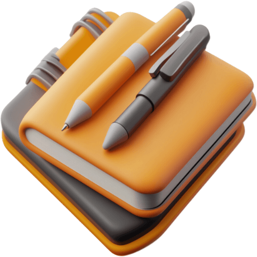3D-Icon von zwei Notizbüchern und zwei Stiften