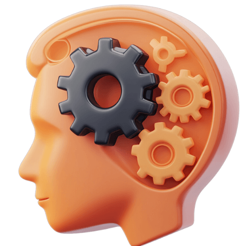 3D-Icon von einem Kopf im Profil in dem sich Zahnräder befinden