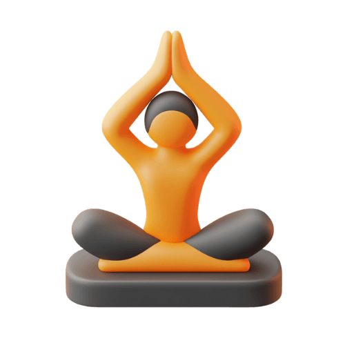 3D-Icon einer Figur im Schneidersitz mit den Händen zusammen über dem Kopf gehalten